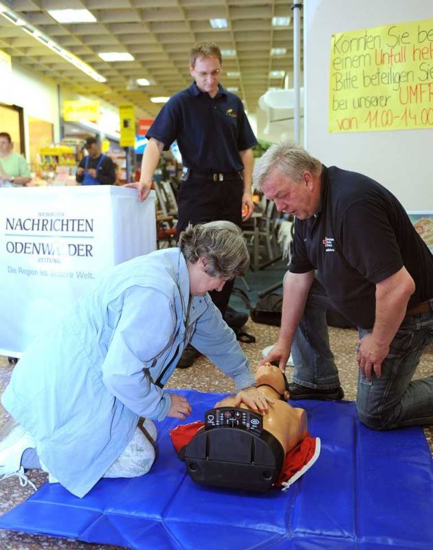 elfen könnten nur die wenigsten. Ordentlich Druck erfordert die „Herz-Lungen-Wiederbelebung“. Nur wenige Befragte trauten sich, diese an einem Dummy zu testen. Spaß hat die Umfrage-Aktion den Schülern der Helen-Keller-Schule dennoch gemacht. Durch einen Erste-Hilfe-Kurs (EHK) und die tägliche Lektüre der Weinheimer Nachrichten haben Schüler der Helen-Keller-Schule eine Menge zum Thema Sicherheit im Straßenverkehr gelernt. In ihrem Text schildern sie ihre Erfahrungen bei einer Umfrage zur Ersten Hilfe: Viele Autofahrer begehen ja bekanntlich bei einem Verkehrsunfall Fahrerflucht oder wissen nicht, wie sie am Unfallort Erste Hilfe leisten können. Dabei reicht meistens schon ein Anruf beim Notdienst.