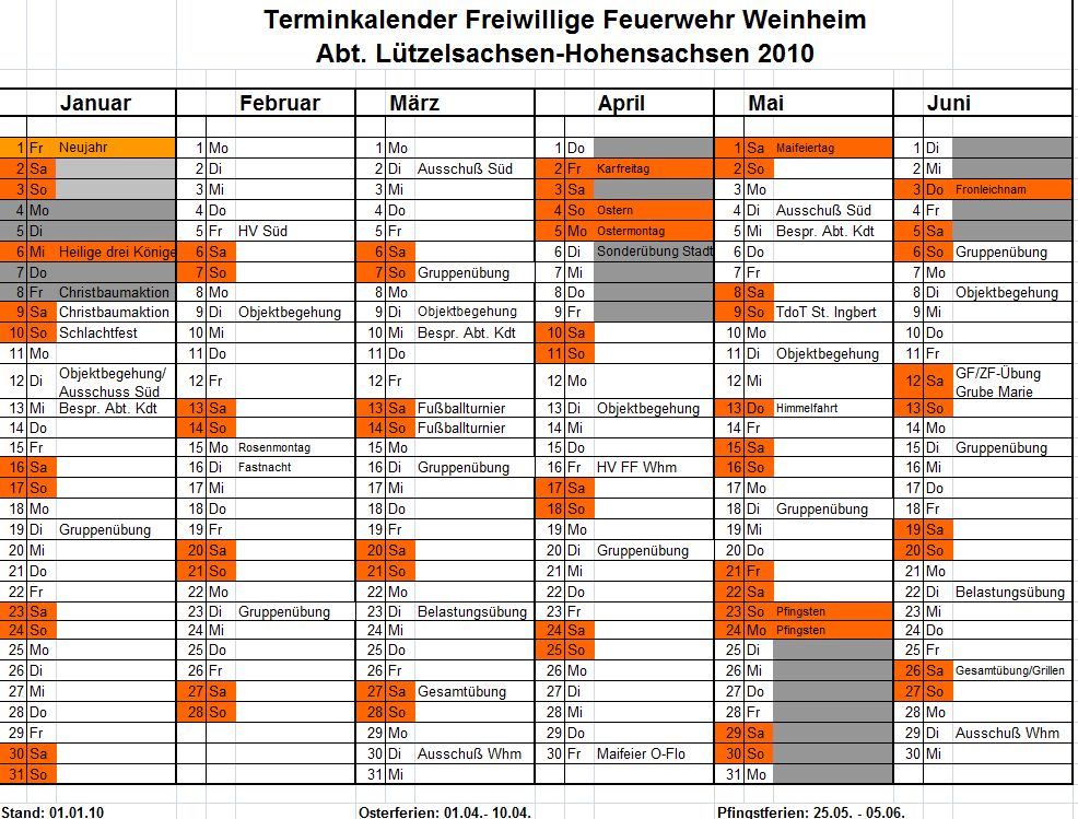 Jeder kennt es! Zu Begin eines neuen Jahres sind die Terminkalender zu aktualisieren damit nichts vergessen wird. Für die Aktiven der Wache Süd kann der Terminkalender hier heruntergeladen werden.