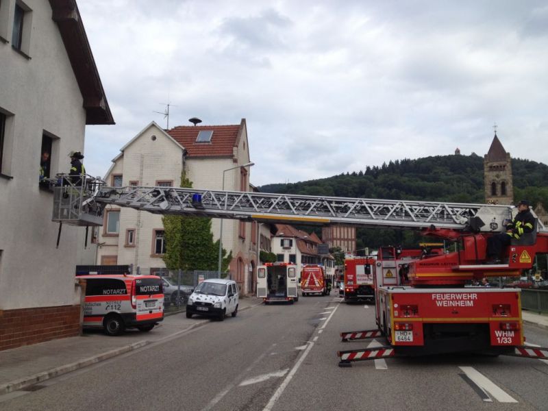 Am Mittwochnachmittag wurde die Feuerwehr Weinheim Abteilung Stadt gegen 16 Uhr zu einem Zimmerbrand in die Breslauer Straße alarmiert. Ein Handwerker der zufällig auf dem Dach arbeitete bemerkte die Rauchentwicklung und den Brandgeruch. Er schaffte sich ein Zugang zu der Wohnung und stellte fest, dass ein Brotbackautomat in der Küche Feuer gefangen hatte.
