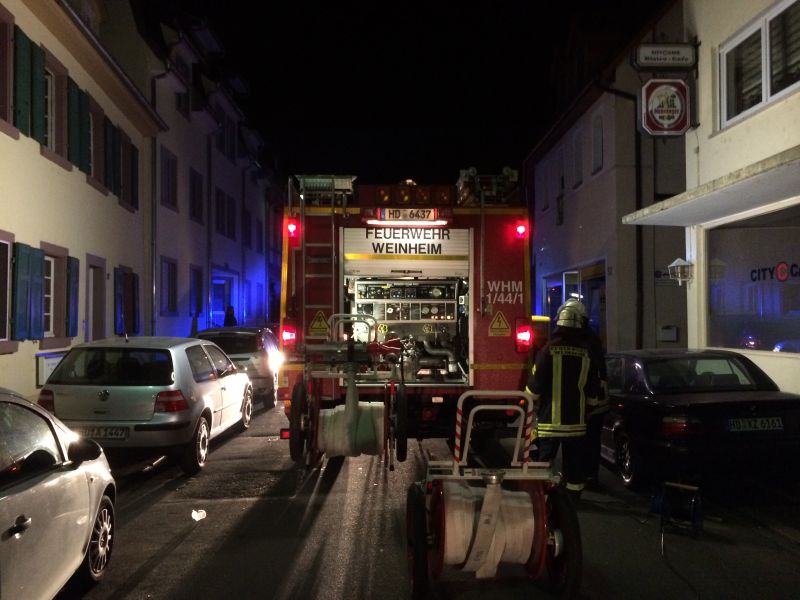 Eintreffen der Weinheimer Feuerwehr hatten die Nachbarn den Brand bereit