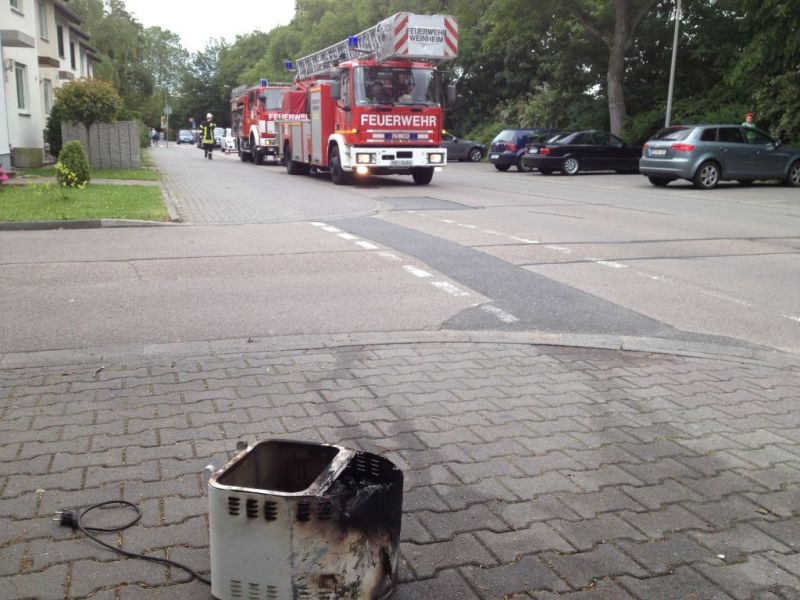 Am Mittwochnachmittag wurde die Feuerwehr Weinheim Abteilung Stadt gegen 16 Uhr zu einem Zimmerbrand in die Breslauer Straße alarmiert. Ein Handwerker der zufällig auf dem Dach arbeitete bemerkte die Rauchentwicklung und den Brandgeruch. Er schaffte sich ein Zugang zu der Wohnung und stellte fest, dass ein Brotbackautomat in der Küche Feuer gefangen hatte.