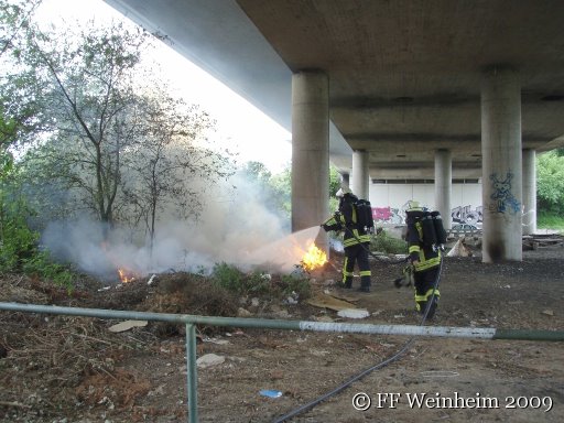 Zu einer starken Rauchentwicklung im Bereich der Zeppelinbrücke wurde die Feuerwehr Weinheim Abteilung Stadt am Mittwochmittag kurz vor 12 Uhr gerufen. Es stellte sich heraus, dass Unrat und Grünschnitt unter der Brücke aus bisher ungeklärter Ursache in Brand geraten war.